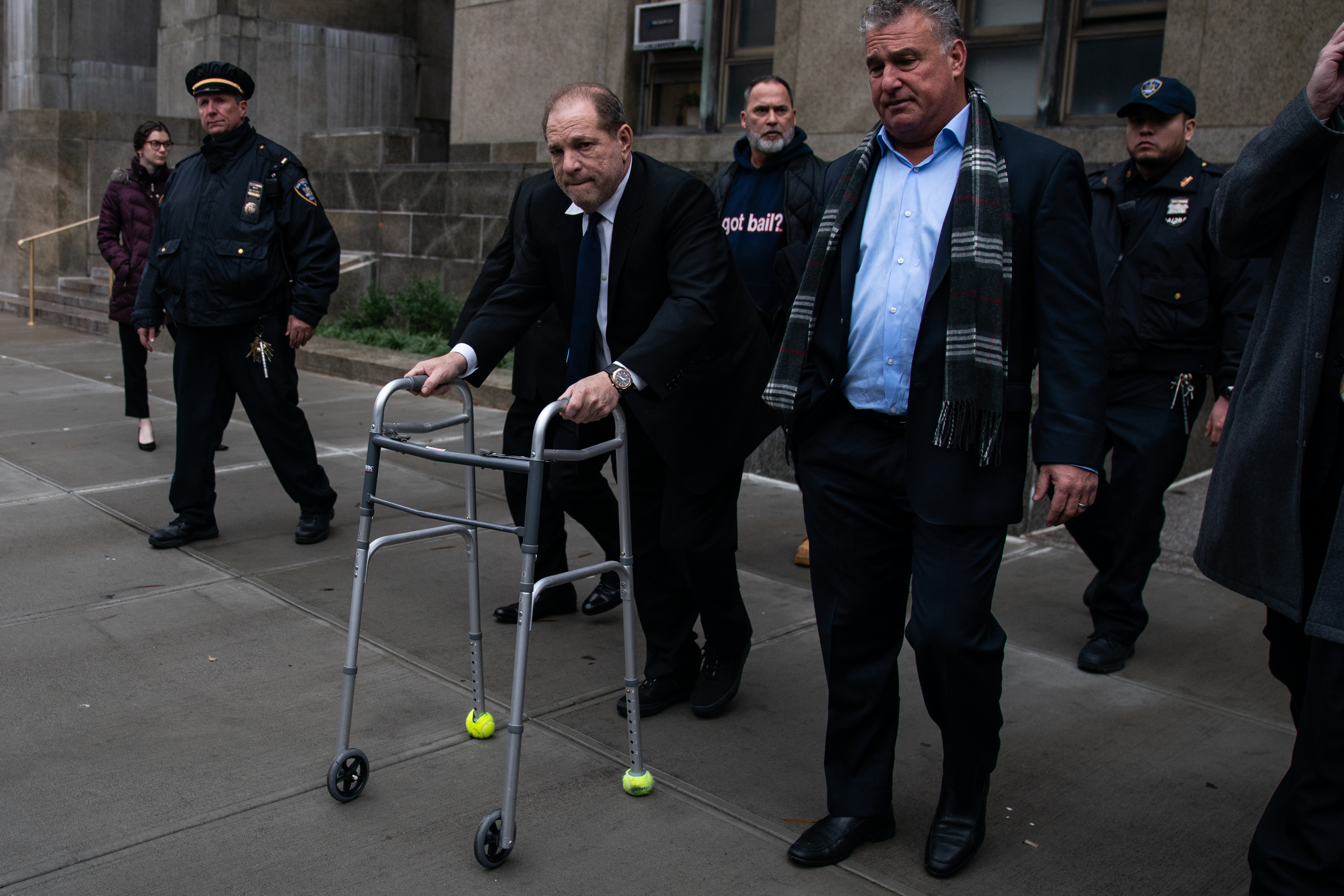 Çarşamba günü yapılan ceza davası duruşmasında, Weinstein bir yürüteç kullanarak geldi ve savcılar, Weinstein'ı elektronik ayak bileği monitörünü bilerek düzgün bir şekilde giymemekle suçladıktan sonra kefaletini artırdı. 2013'te New York'ta otel odasında bir kadına tecavüz ettiği ve 2006'da farklı bir kadına zorla cinsel bir eylem yaptığı suçlarını reddetti. Ancak, suçlu olduğu kanıtlanırsa Weinstein, müebbet hapis cezası alabilir.