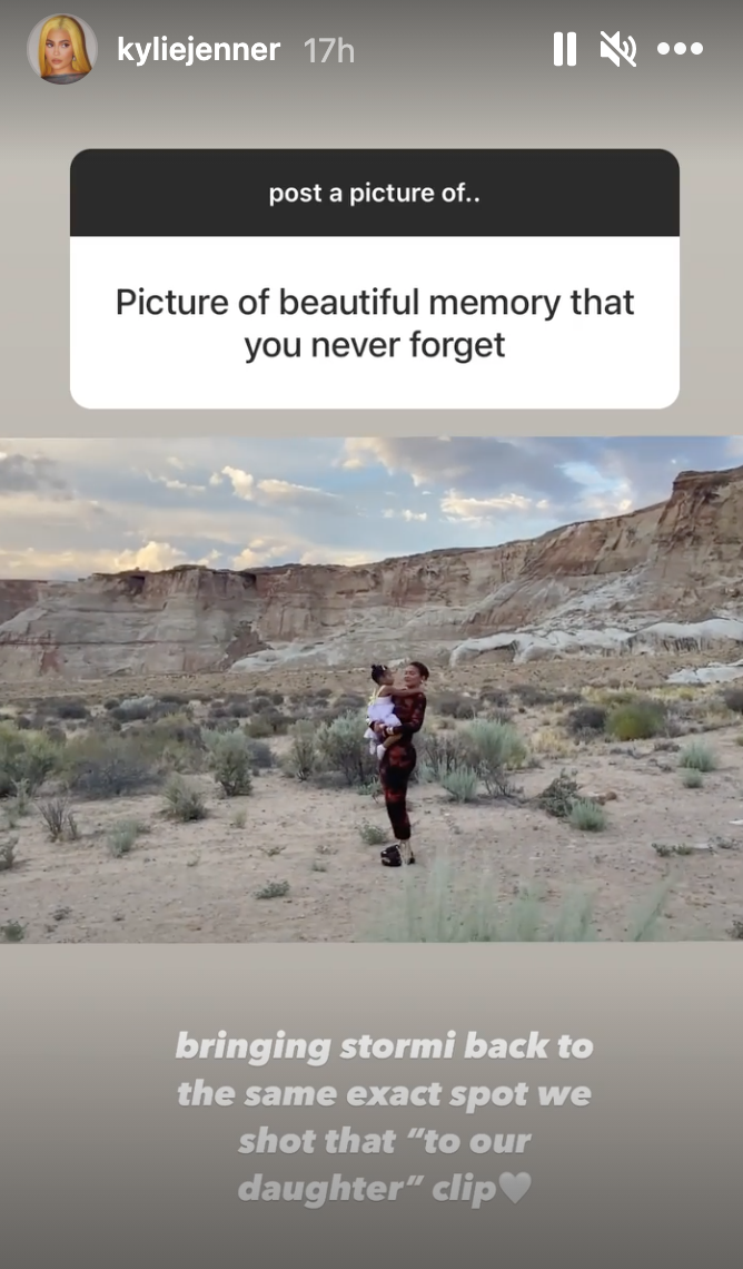 Aynı zamanda Stormi’nin babası Travis Scott ile köpekleri Norman ve Bambi’yi gezdirdikleri bir fotoğraf paylaşan Jenner, son olarak kızının doğum duyurusunu yaptığı ‘For our daughter’ hamilelik videosunun çekildiği yerde bir fotoğraf paylaştı.