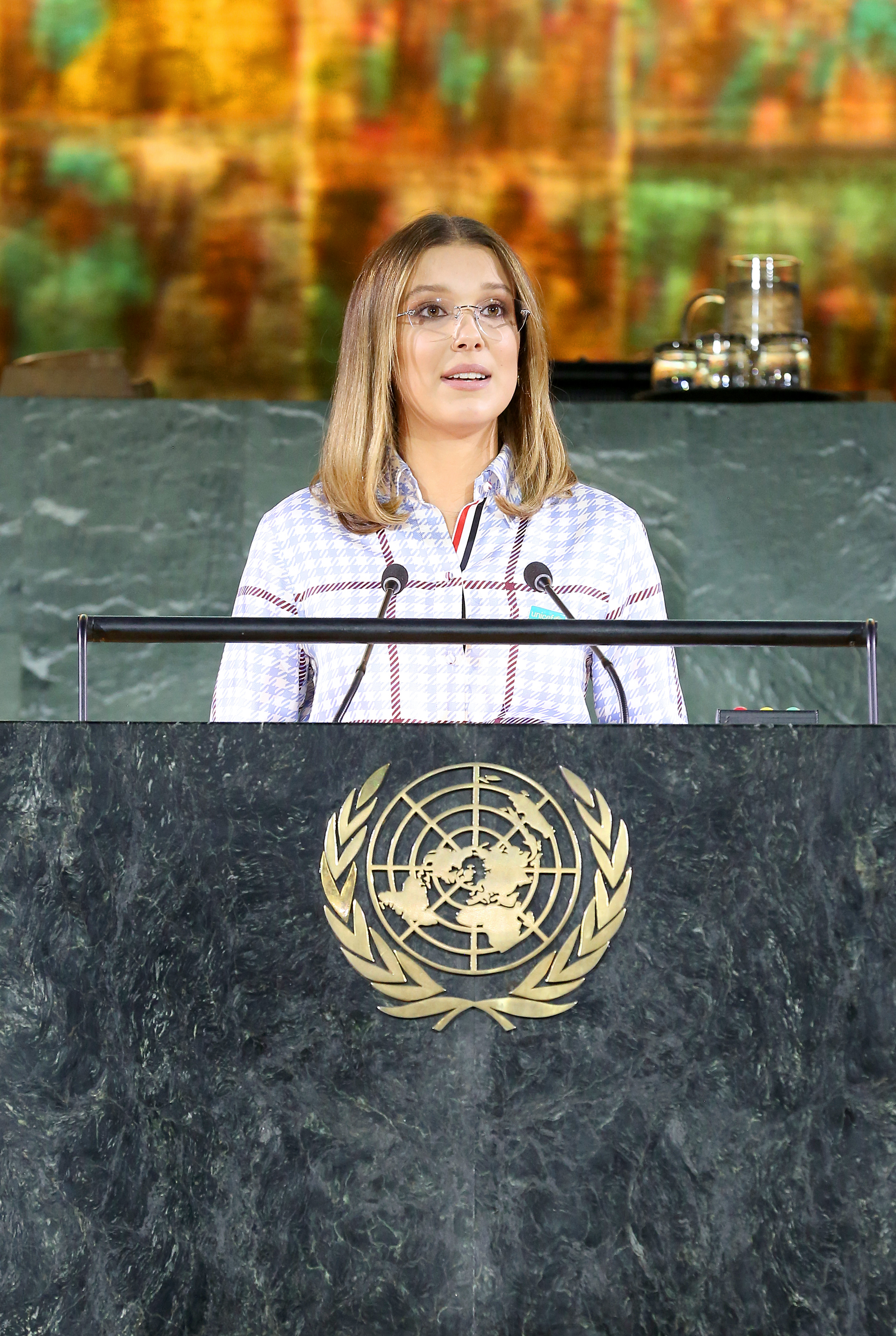 Millie, UNICEF'in en genç İyi Niyet Elçisi ve çalışmaları, eğitimden şiddete kadar dünyanın dört bir yanındaki gençleri etkileyen Çocuk Hakları ve sorunları hakkında farkındalık yaratmayı içeriyor. Çarşamba günü düzenlenen zirvede kürsüye, UNICEF Büyükelçisi David Beckham tarafından davet edillen Millie Boby Brown, "Bu işin peşini bırakmayacağım" diyerek başladı sözlerine.