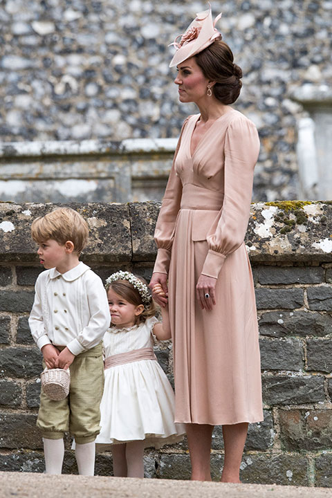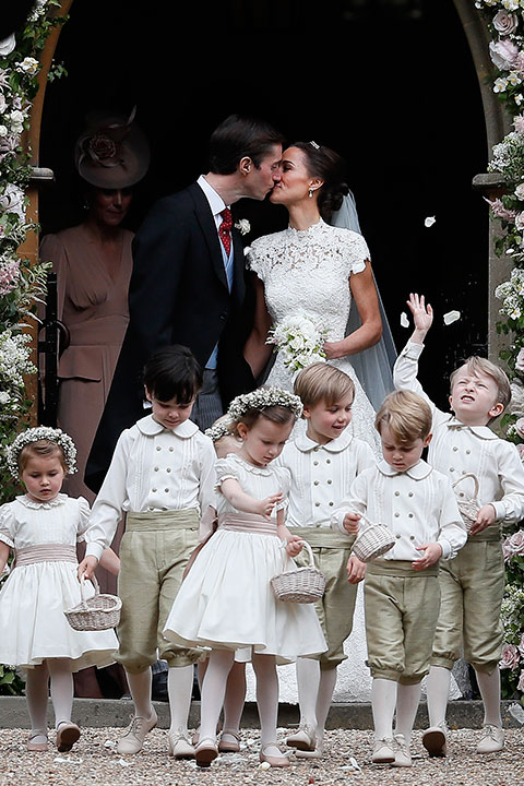 Berkshire'da düzenlenen nikah töreninde Kate Middleton da her an gelinin yanındaydı. Düşes'in pudra rengi, mini peplum detaylı elbisesi ise Alexander McQueen'den Sarah Burton imzalı. Pippa Middleton'ın nikahından geriye kalan en sevimli görüntü ise Prens George ve Prenses Charlotte'un da aralarında olduğu çocuklar olabilir.