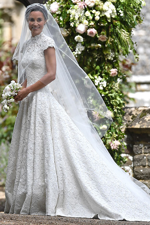 Ablası Kate Middleton gibi çoğu kişinin Alexander McQueen giymesini beklediği Pippa Middleton tamamı dantel, A kesim ve büstü kapalı Giles Deacon tercih etti. Ve şimdiye kadar stiliyle hiçbir zaman hayal kırıklığına uğratmayan Pippa, Couture Giles Deacon gelinliğiyle de tarzının başarısını bir kez daha kanıtladı. Arkadan, hacimlice toplanmış saçı ve her zaman tercih ettiği gibi toprak tonlarındaki makyajıyla Pippa Middeton güzel gelinler arasına adını yazdırmış gibi görünüyor.