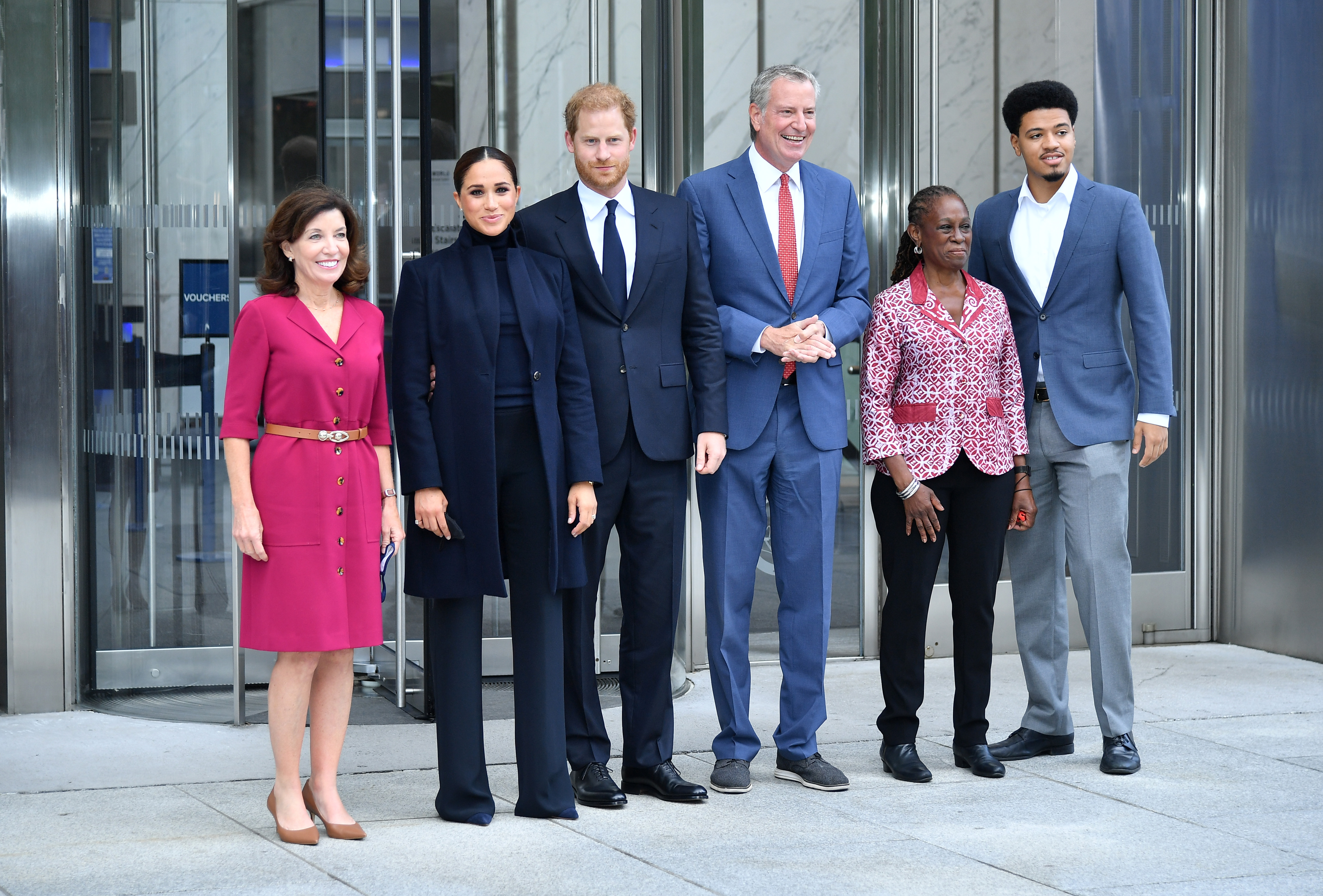New York Eyaleti Valisi Kathy Hochul, Meghan Markle, Prens Harry, New York Belediye Başkanı Bill De Blasio, Chirlane McCray ve Dante de Blasio (Getty Images)