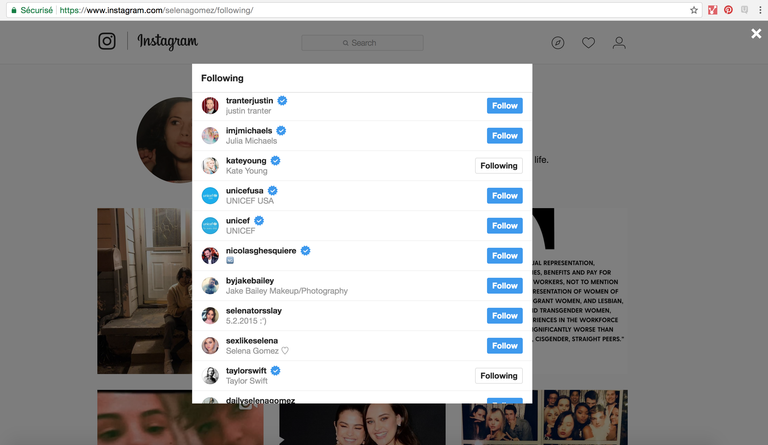 Gomez hala stilisti Kate Young, en yakın arkadaşı Francia Raisa, Taylor Swift, Jessica Alba ve fan hesaplarını takip etmeye devam ediyor. Hayranlarının gözünden kaçmayan bu değişiklik herkesi şaşırttı. Takip ettiklerini 316’dan 37’ye düşüren ünlü şarkıcı kafalarda soru işaretleri yarattı.